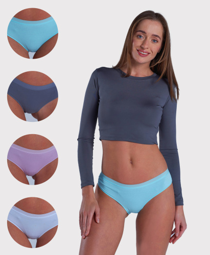 Классический крой со средней посадкой подчеркивает фигуру и обеспечивает свободу движений. Оверлочная обработка краев делает белье аккуратным, прочным и приятным в носке. Однотонная палитра позволяет легко сочетать модель с любым бюстгальтером и использовать в качестве базового белья на каждый день.