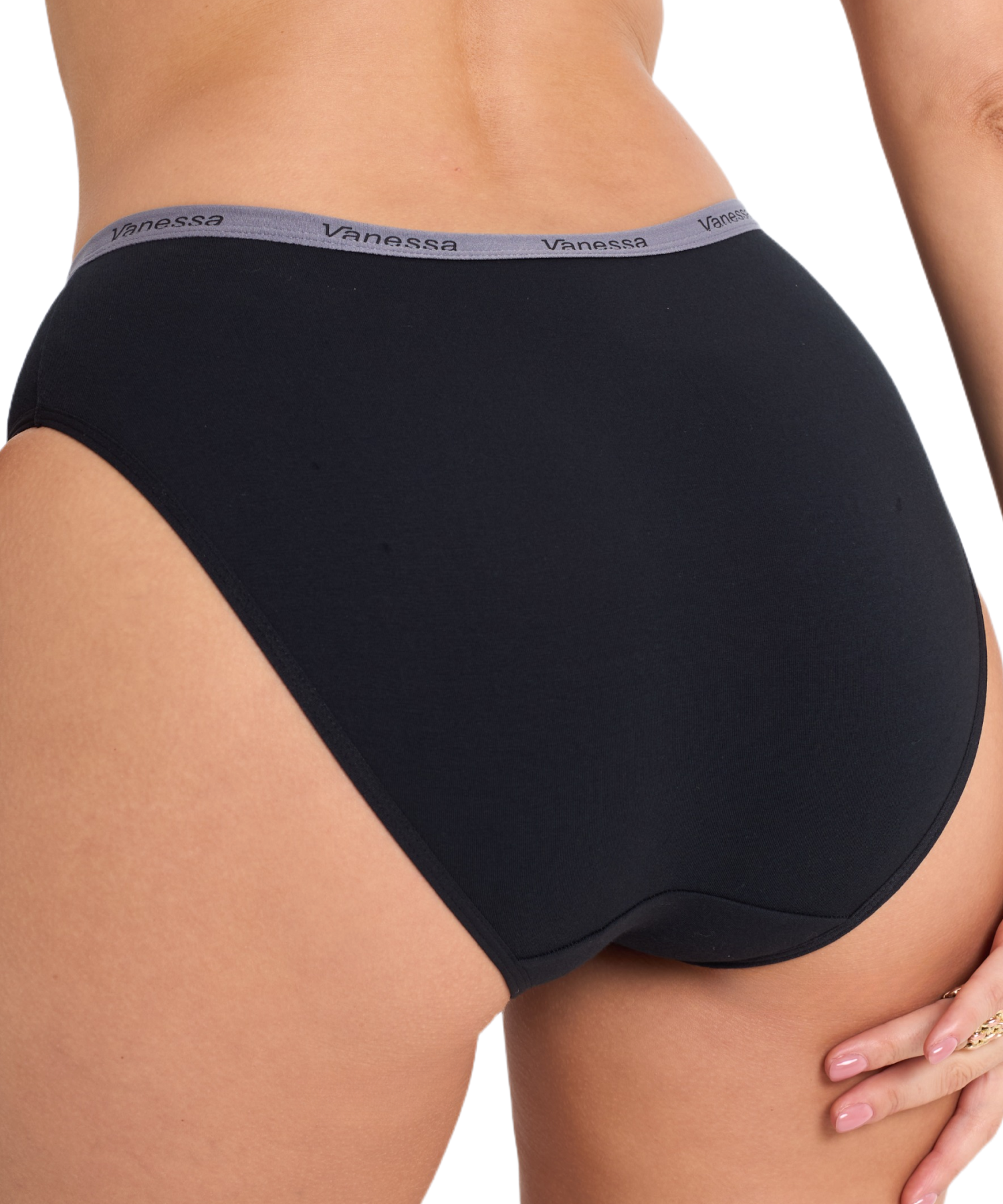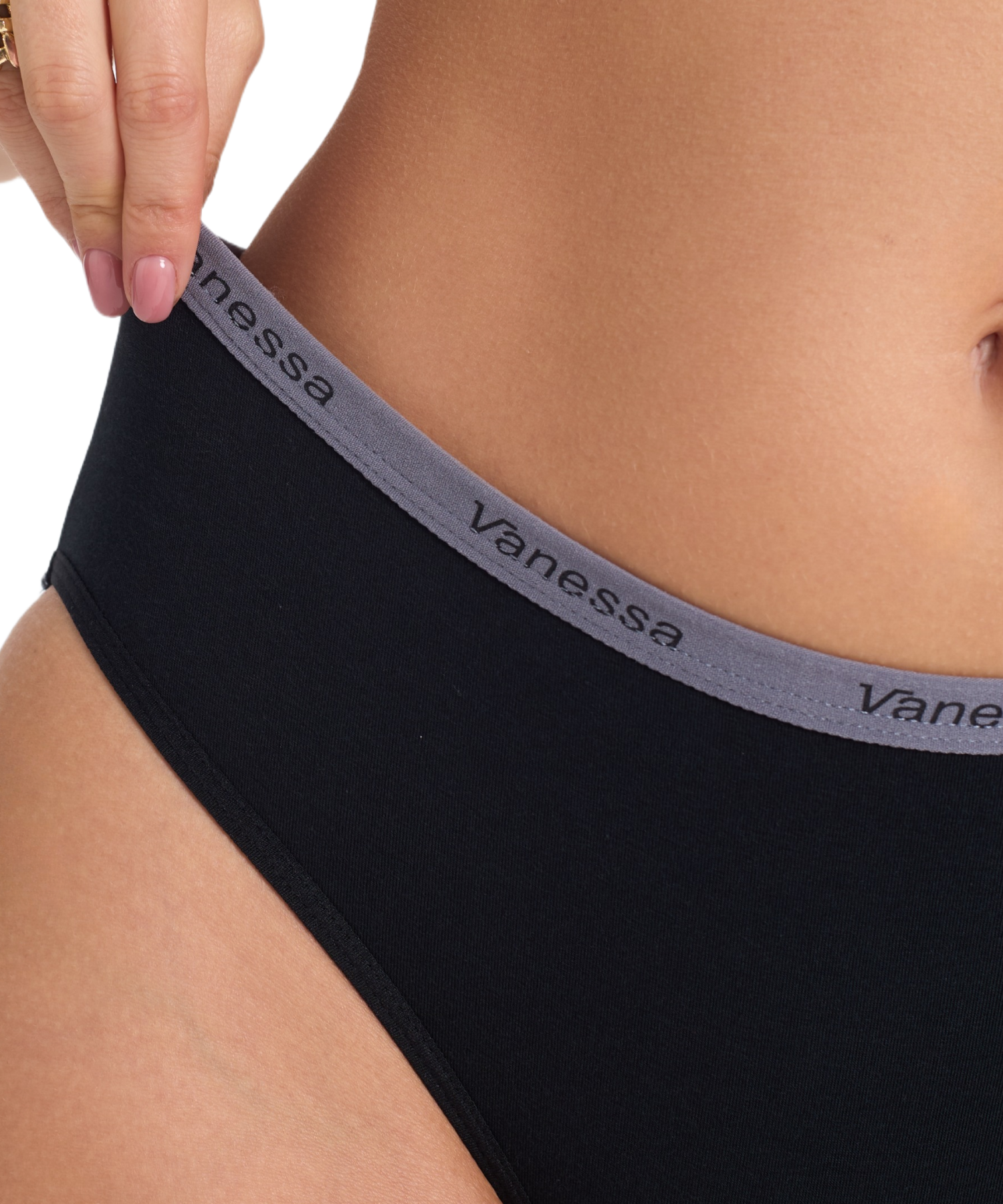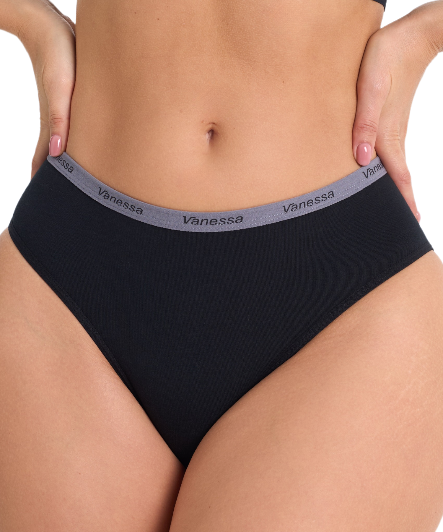 Средняя посадка обеспечивает удобство в течение дня, а эластичный пояс с логотипом Vanessa надежно фиксирует белье и добавляет стильный акцент. Однотонное исполнение делает модель универсальной — такие трусы легко сочетаются с любыми бюстгальтерами и подходят для ежедневного использования.