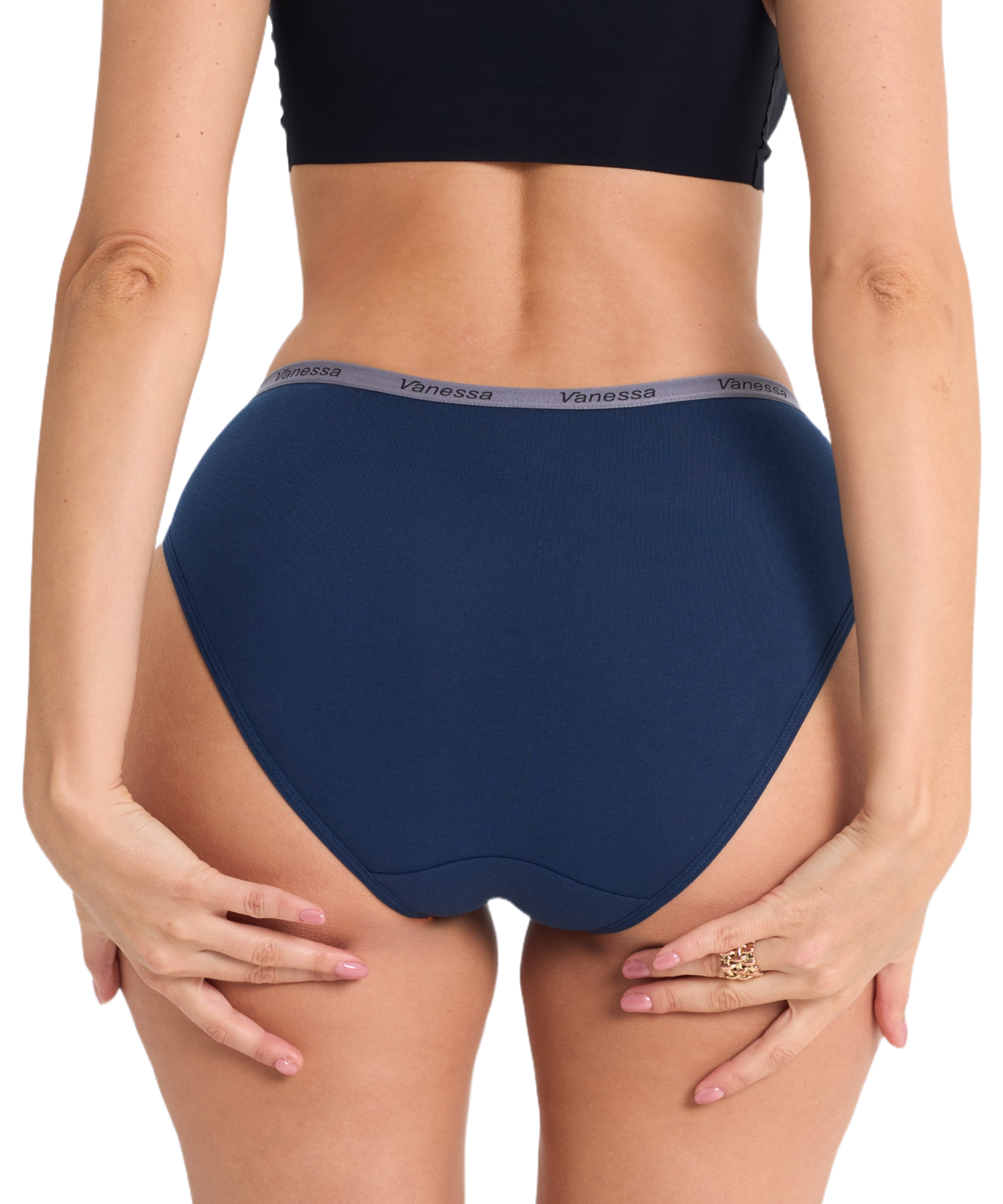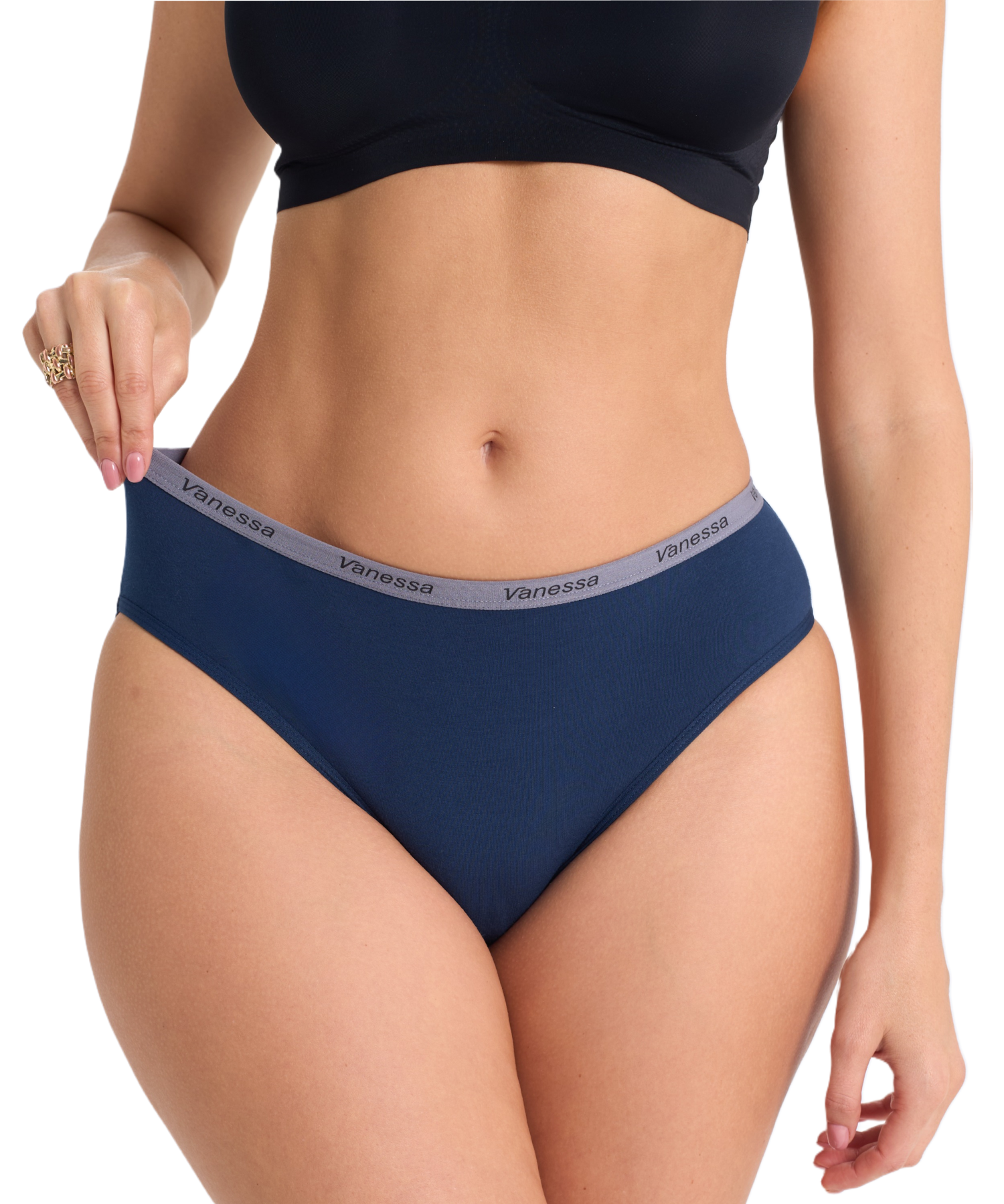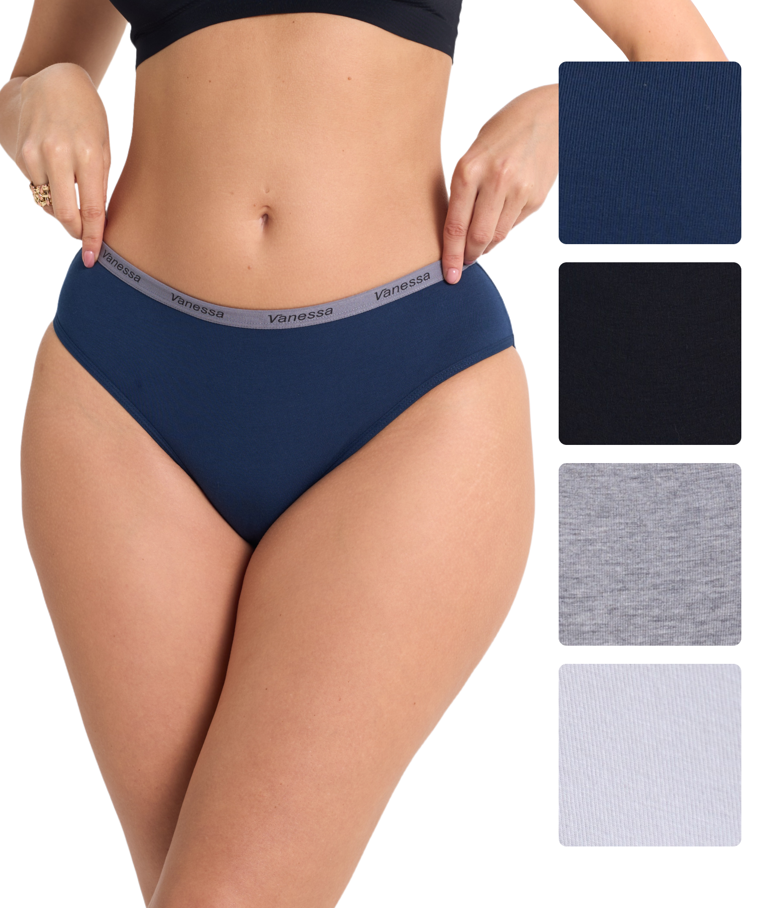 Средняя посадка обеспечивает удобство в течение дня, а эластичный пояс с логотипом Vanessa надежно фиксирует белье и добавляет стильный акцент. Однотонное исполнение делает модель универсальной — такие трусы легко сочетаются с любыми бюстгальтерами и подходят для ежедневного использования.