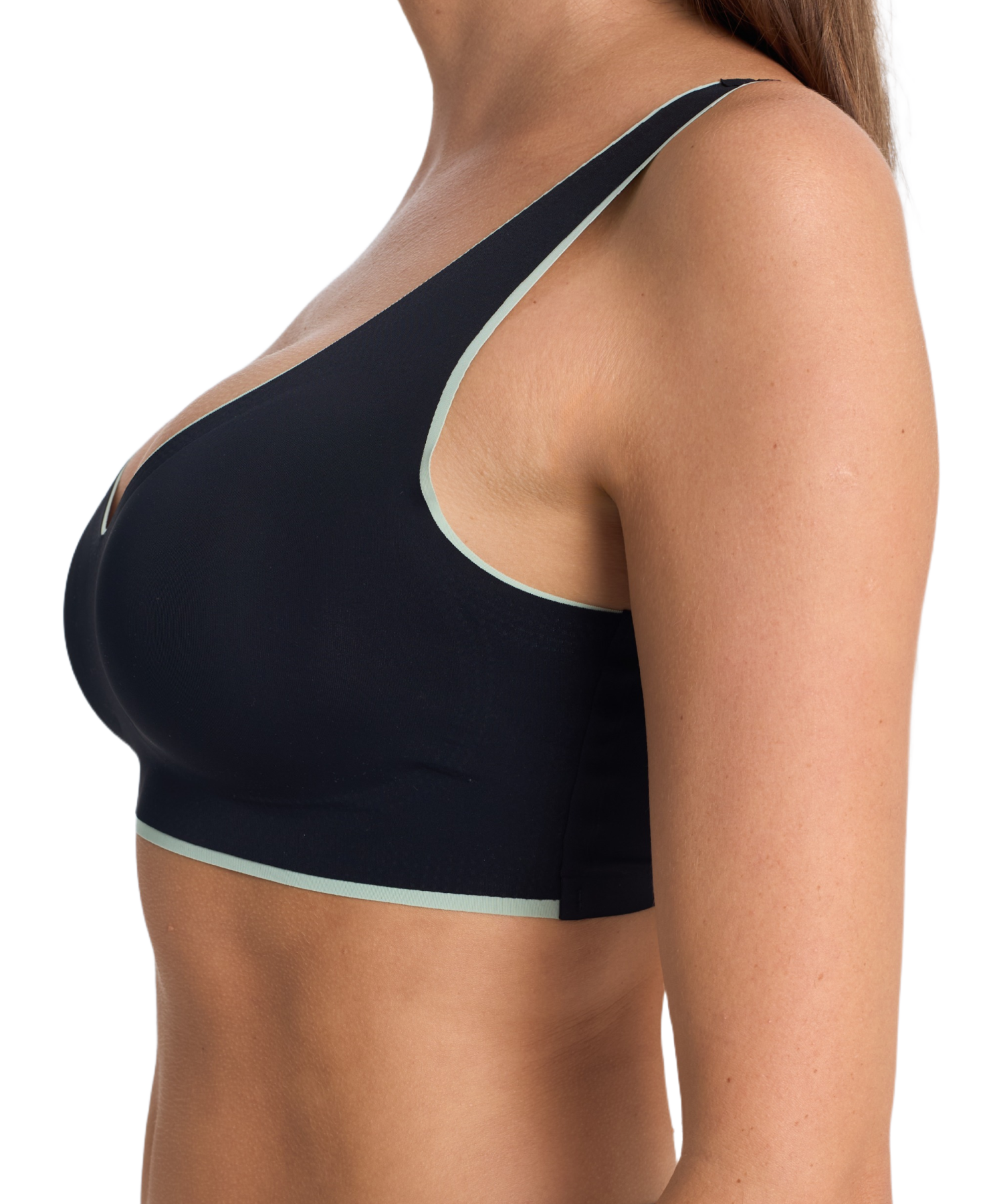 Формованные чашки обеспечивают естественную поддержку без косточек и застежек, а бесшовная технология делает топ незаметным под одеждой. Благодаря универсальному крою модель подходит для повседневной носки, занятий спортом и отдыха.