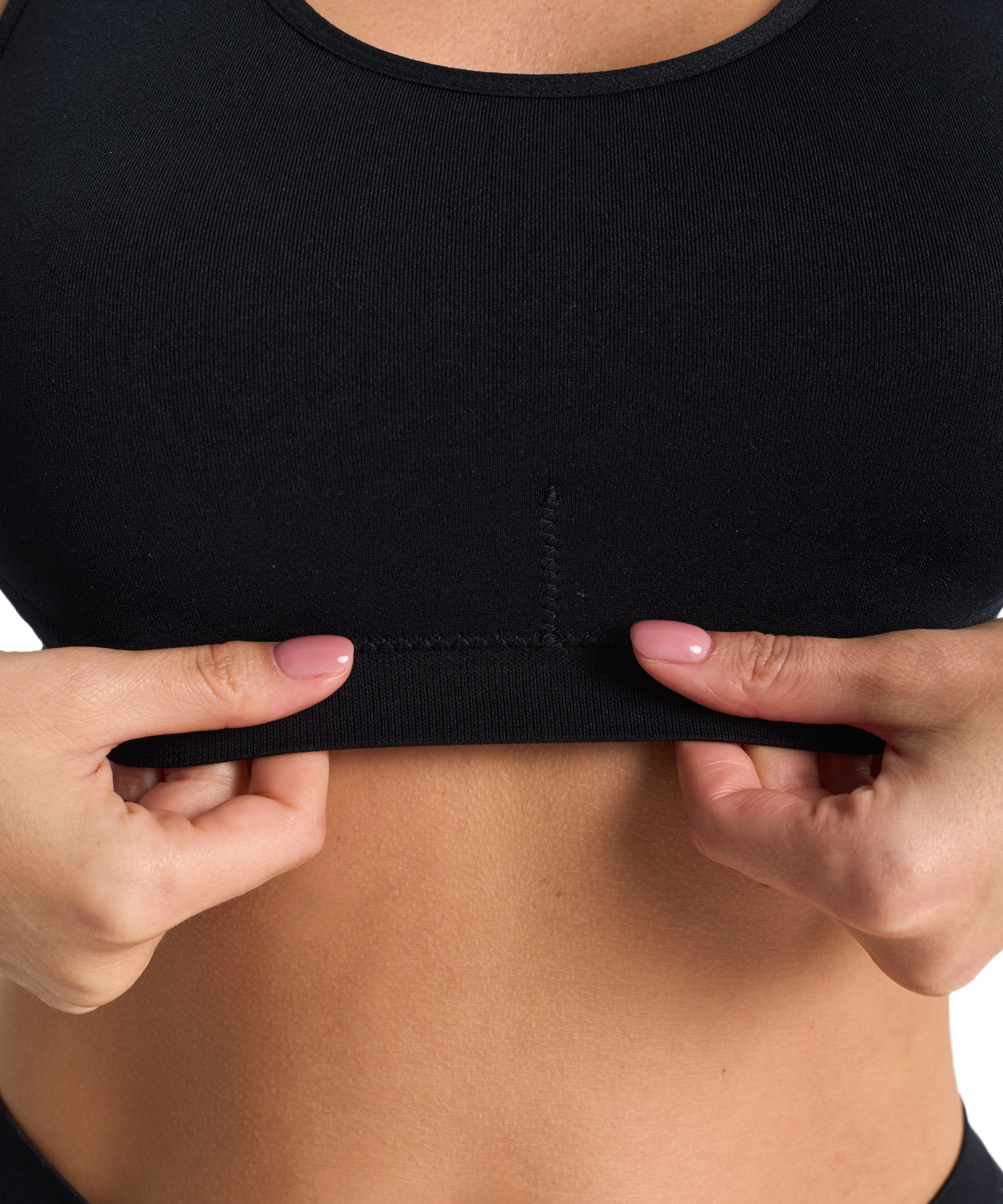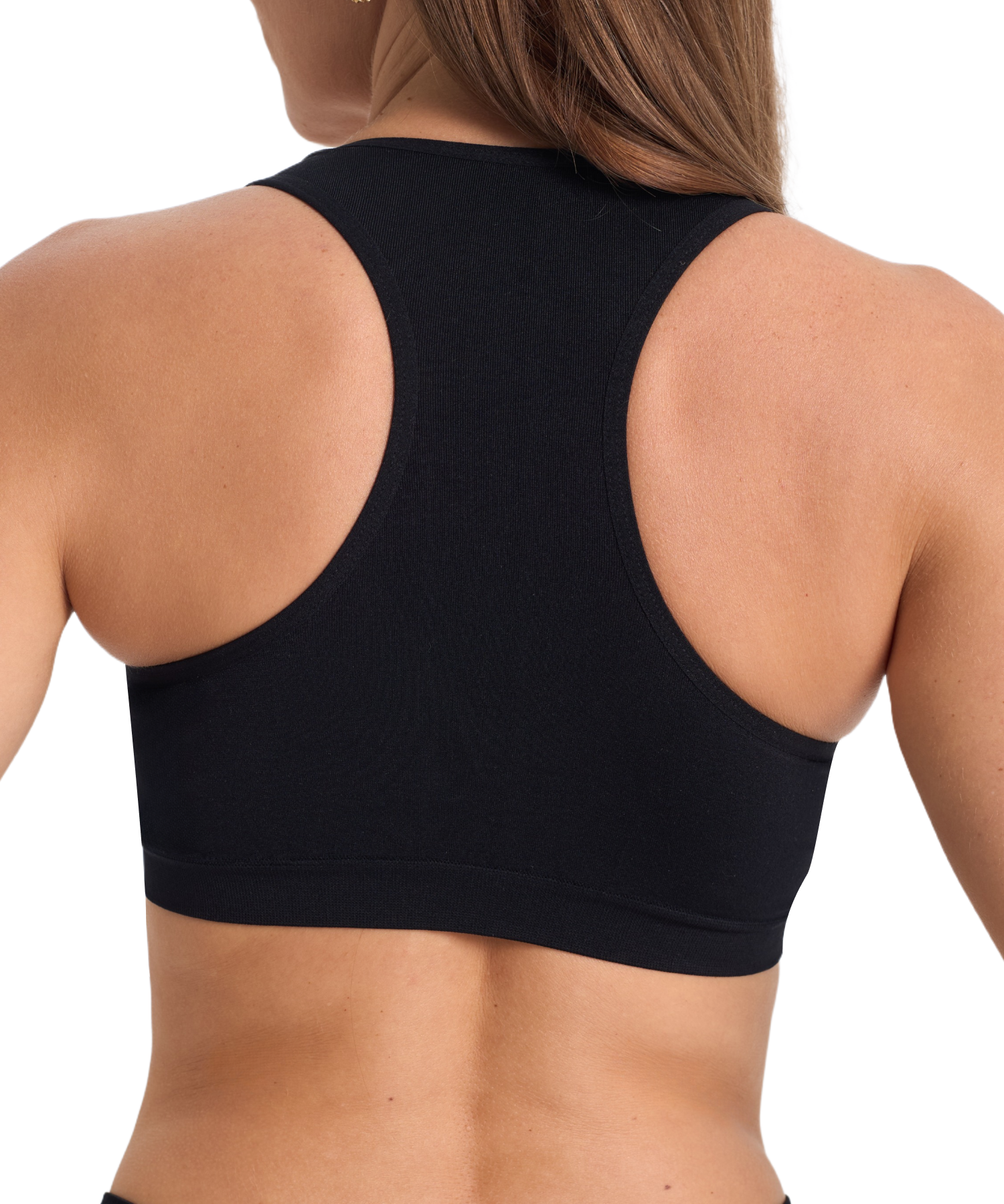 Бесшовная технология обеспечивает идеальную посадку без натирания и дискомфорта, а формованные чашки мягко поддерживают грудь, сохраняя естественные линии. Эргономичный крой со спинкой-борцовкой обеспечивает надежную фиксацию и удобство во время активных движений.